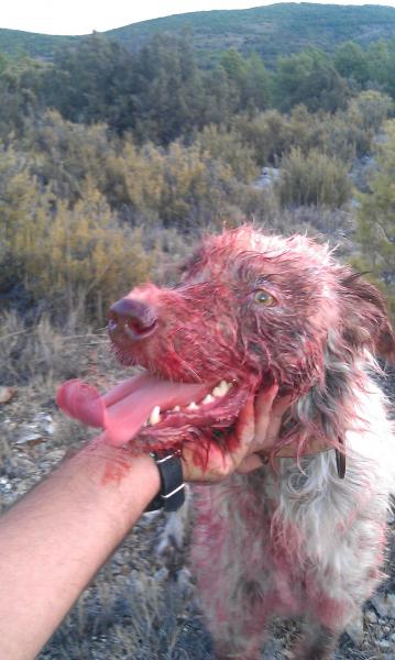Y no se ha dado mal del todo el dia de hoy, entre un compañero y yo con nuestros respectivos canes hemos pillado dos jabalis, uno un machete de unos 60 kg y el otro de unos 25 he estado presente en los dos agarres pero como iba de cámara oficial le he dejado al compañero que les pinche y yo grababa, a la siguiente ya me tocara a mi gastar el acero.