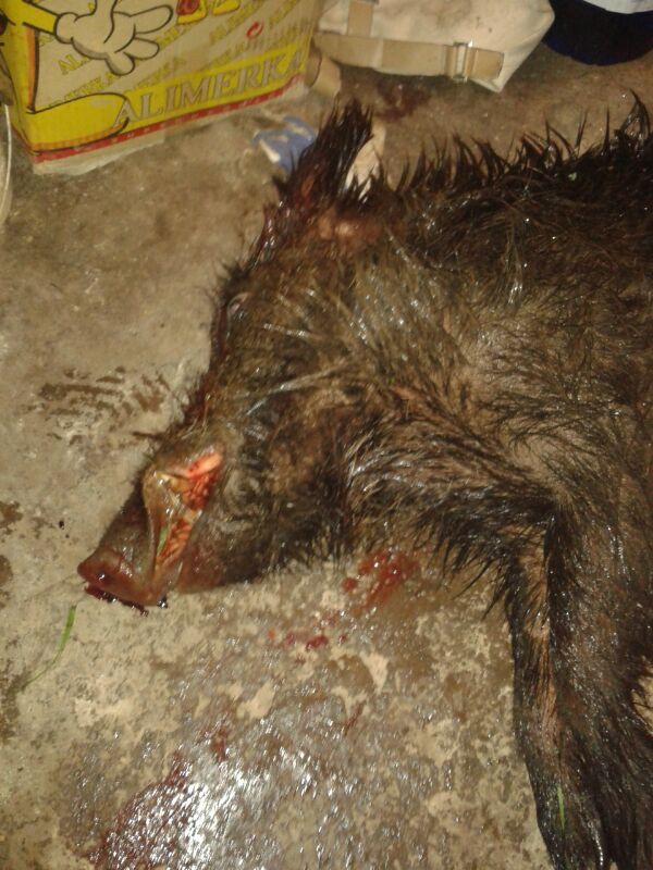 Resultado: 100 Kg. y 3 perros jodidos. 2 con las tripas fuera.