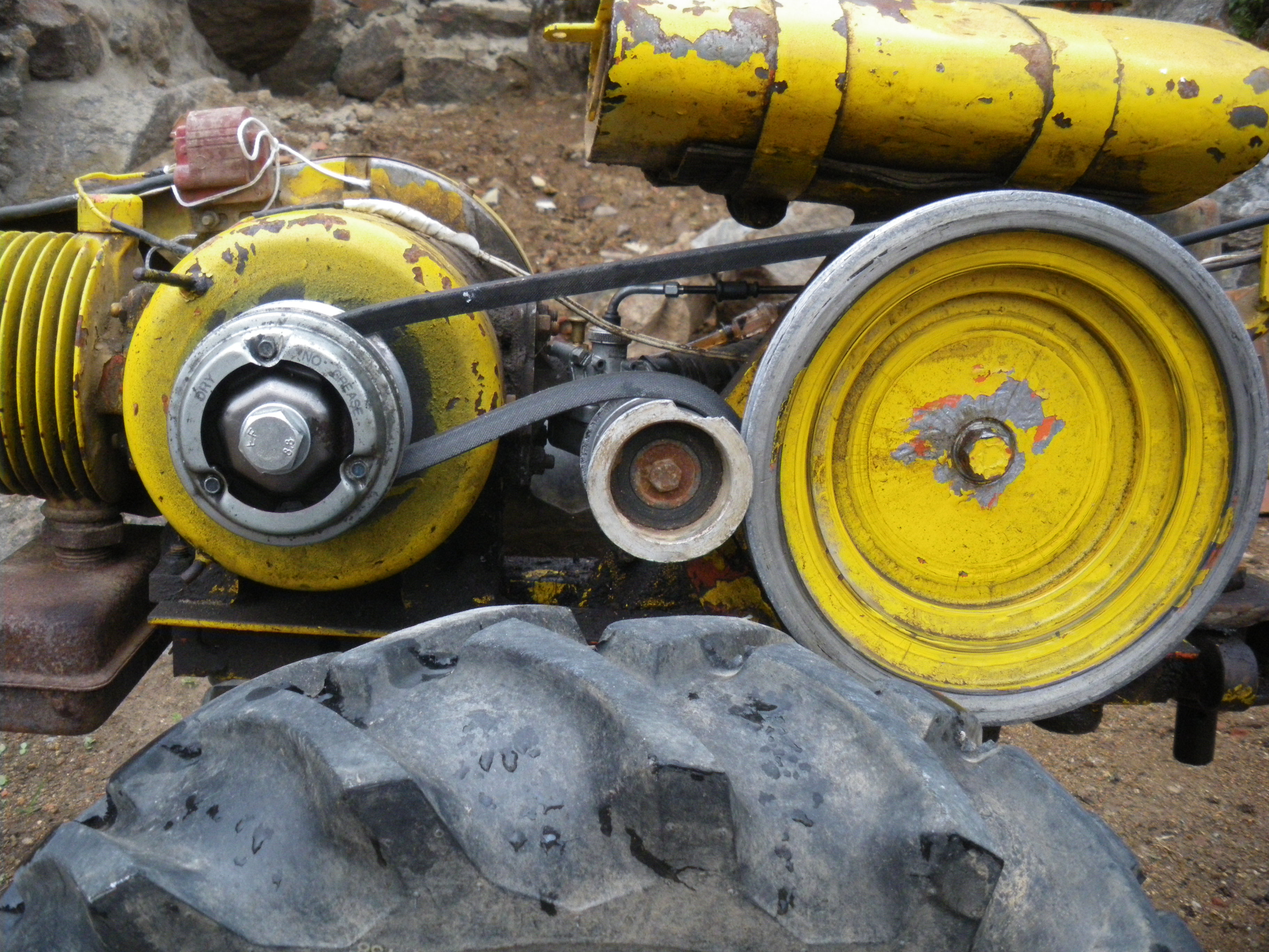Jv, esto es fácil mira, localizas un variador centrifugo normalmente de moto, yo lo compre en el desguace de "Motostión" de Madrid y seguid amente desmontas el apéndice multipoleas que tenga la motoazada en el cigüeñal y ale a mecanizar el aparatito solo tienes que roscar el interior del cojinete sobre el que se deslizan las poleas, adaptar las piezas que giran sujetas al cigüeñal construyes un tornillo con la misma rosca bueno este lo puedes comprar y adaptar, asi conseguiras que te sirva como cambio progresivo y sin tener que cambiar las correas con la mano que es lo yo tenia que hacer hasta ahora pues la piva tiene mas años que la tos, pero como esta en muy buen uso y tiene creo que 15 caballos, pues me lo he curra do y estoy contento por dos razones por haberlo intentado y por haberlo conseguido sin estropear nada.