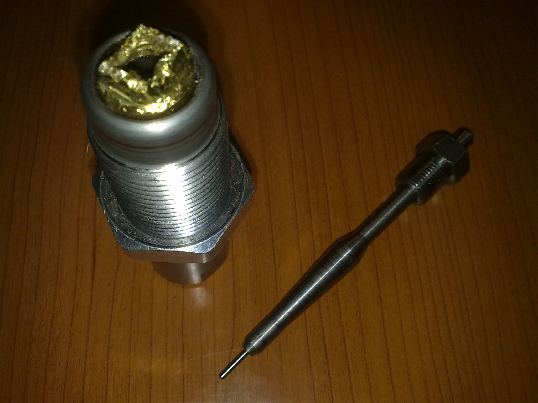 Ruger, os ha faltado lo fundamental antes de meter, lubricar adecuadamente. Lo de calentar el die para sacar una vaina lo he escuchado mas de una vez, pero teniendo en cuenta que el laton al calentarse dilata mas que el hierro, no creo que funcione