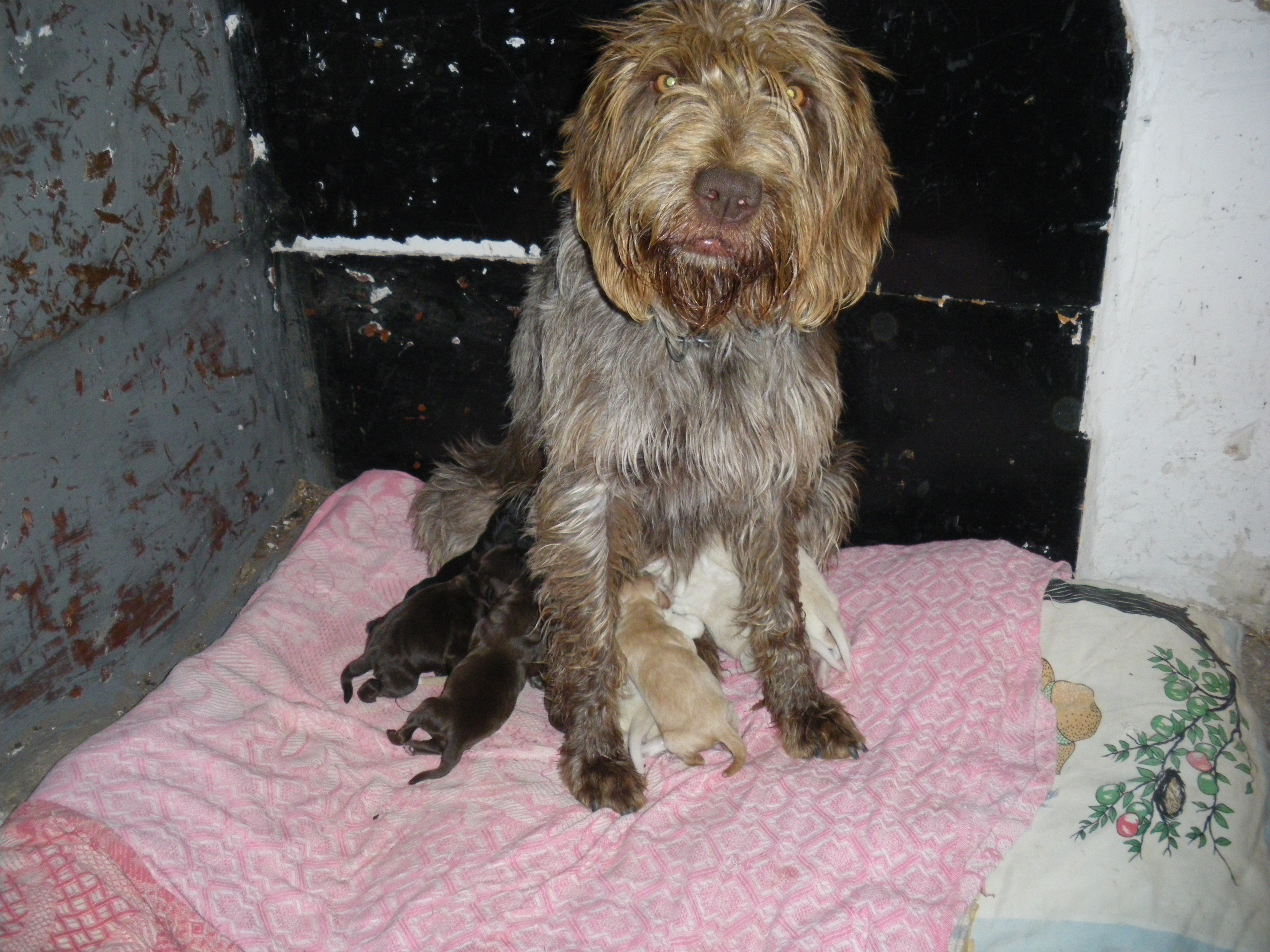 En la foto de la madre de los cachorros ves que es una barbas como la de Josechu y el padre de los cachorros es el barbas de color hígado de la foto donde esta mi esposa con la recova, jejeje,