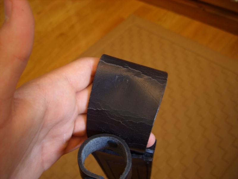 Ruger, compañero si es de cuero la funda de ese cuchillo frota la con mucha cascara de plátano por dentro del paso de la correa y por fuera y no te creas que hablo de balde frota y frota con la cascara de los plátanos una buena mano de cascara de plátano y se cuero se por tierno como no te imaginas compañero