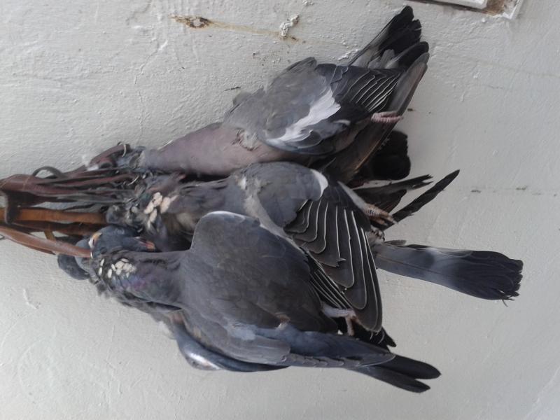 Bueno, pues esta es la perchita de ayer: ocho torcaces con el cimbel, muy disfrutadas y "rebañás" de la solana de enfrente al puesto.