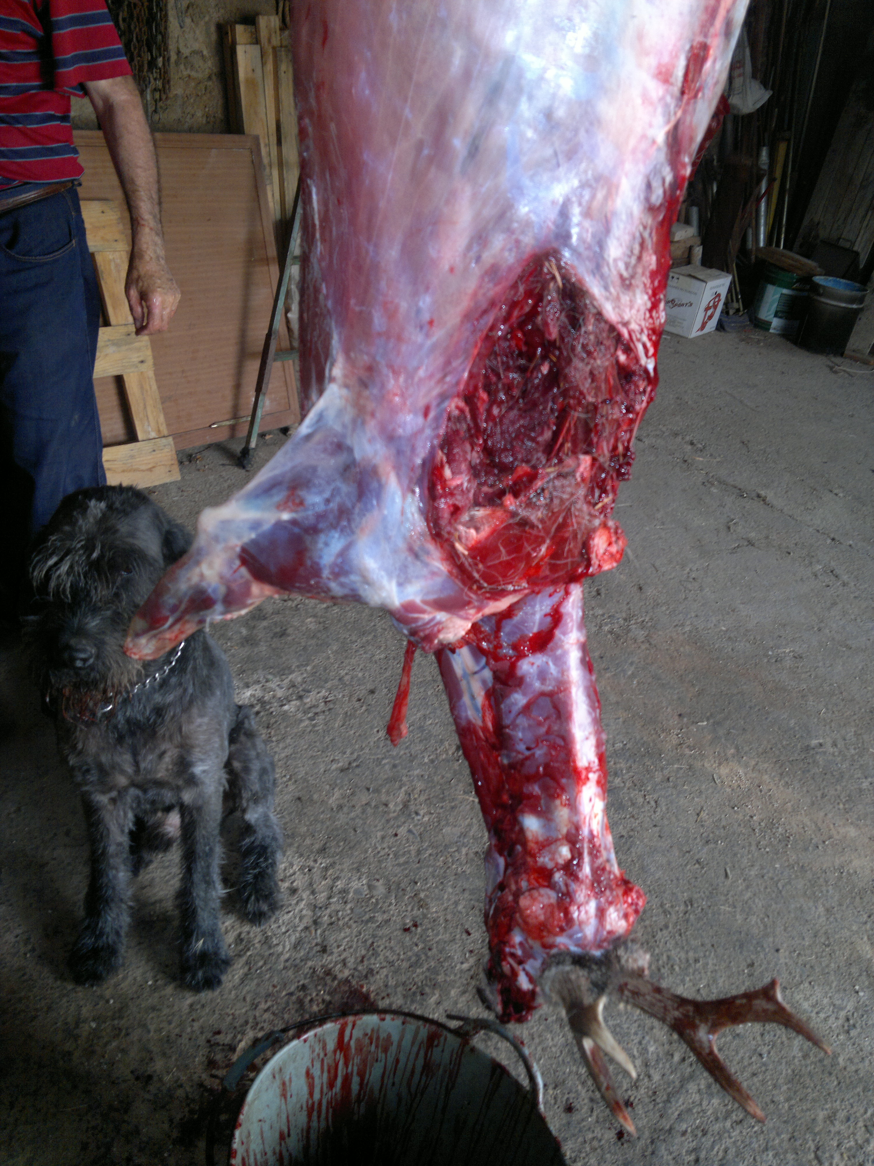 Tiro muy trasero y en las parte blandas(tripas)Casi en la columna,pero debido a la espansion de la bala Le destrozo el lomo y todas las visceras de la zona,saliendo por el jamon trasero sin tocar hueso.Muerta sobre sus pasos.