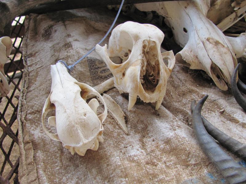 Aqui os pongo una foto del almacen de la finca "onmuramba" de Namibia, en este sitio es donde guardan los craneos y cuernos que se encuentran muertos por la finca, en este caso el craneo corresponde a un guepardo ( el que esta en primer plano).