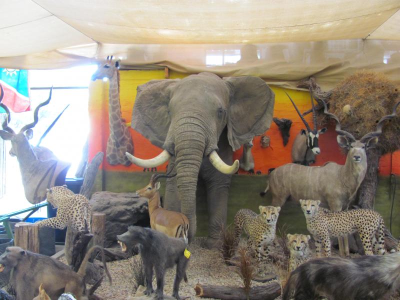 En esta foto vemos una clasica taxidermia de Africa, en este caso se trata de una en la localidad de Gobabis (namibia), en ella habia de todo lo que un cazador pueda soñar.