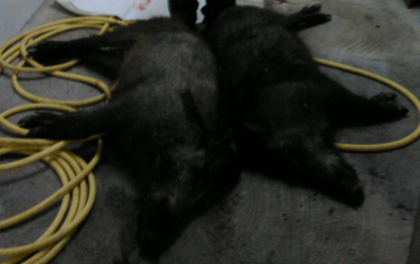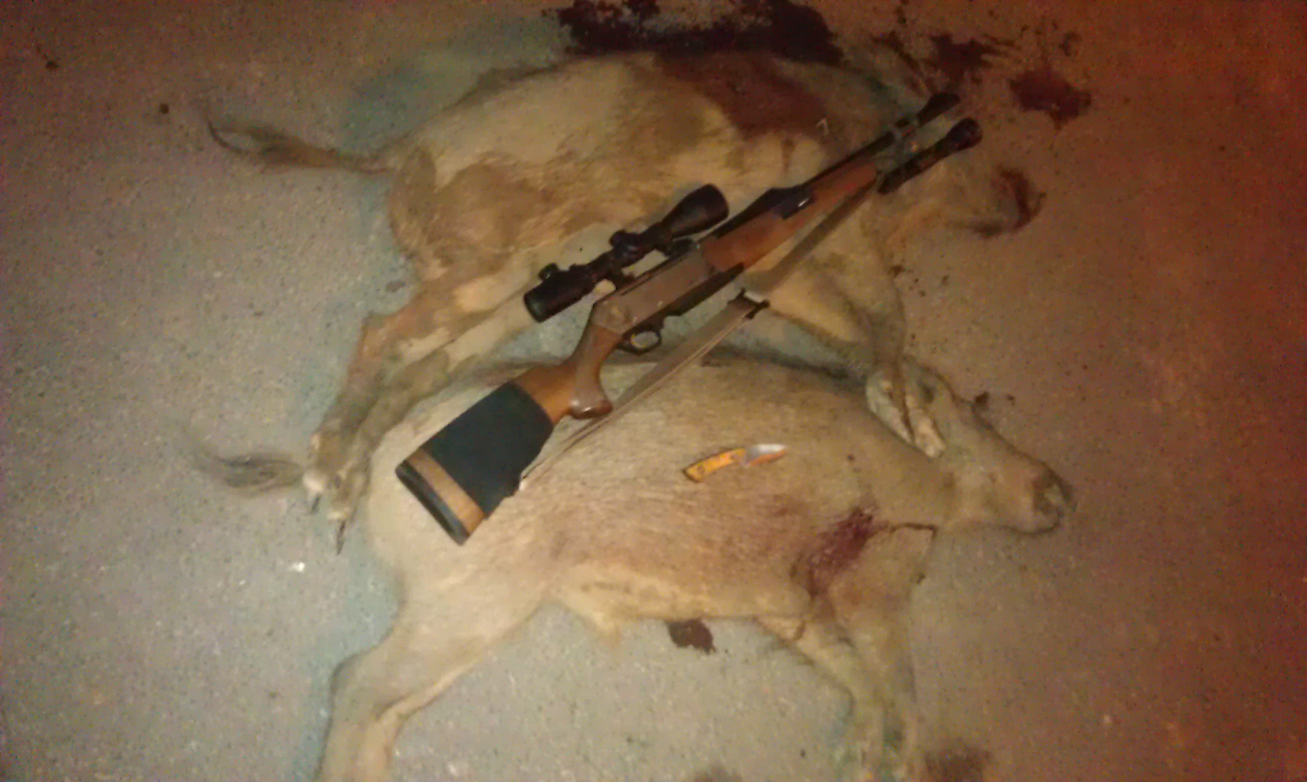Y par amas alegría vi que no había errado en mi elección y que eran 2 machetes del año de unos 50Kg a los cuales les tire a unos 20-25 m de distancia con un rifle FN Browning Long Track Hunter en calibre 9,3x62 y munición RWS con punta KS , llevado el primero el toro en la paletilla sin romper huso algo trasero rompiendo tres costillas al entrar dos al salir y destrozando los pulmones a su paso, y el segundo un tiro justo encime de las pletillas partiéndole la columna y rompiéndole unas cuantas costillas.