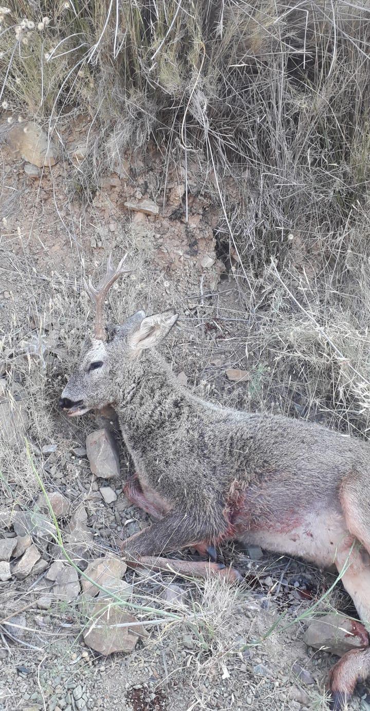 bueno después de desechar alguno en la temporada hasta agosto, por pequeño y de fallar uno a menos de 60 metros, que yo no vi, me vio el a mi y me sorprendió y después del parón de agosto, en septiembre volvimos a la carga, empezamos temprano, sobre las 7 de la mañana, al poco de empezar unas ciervas nos sorprendieron escapándose de nosotros, el pasto esta muy seco y se hace mas ruido del deseado, seguimos y al poco un corzo nos sorprende y se escapa de nosotros ladrando nos, no alcanzo a ver la cuerna, no me dio tiempo, pero si consigo distinguir que es grande y esta gordo, después de eso nada de nada, todo el día andando, buscando las querencias y alguna cierva y poco mas, comemos, la compañía es inmejorable, hoy se ha venido con migo mi mujer, después de comer una siesta, hace demasiado calor, los animales hacen lo mismo, es tontería buscarlos ahora, por la tarde otro paseo por las zonas de querencias, empieza a anochecer y decidimos irnos para el coche, ya es hora, cuando de camino al coche mi mujer me dice, que es aquello, miro y hay esta, tan tranquilo comiendo entre unos pinos, yo ni lo había visto, a vista limpia no se puede apreciar bien, pero coloco el trípode, apoyo el rifle y lo meto en el visor, con el visor lo veo mejor y veo que es tirable, disparo y cae sobre sus patas, no es medallable ni cosas así, pero de los que he visto cazados este año, por mis compañeros es el segundo mejor, la verdad que la foto al ser de noche, tampoco le hace justicia y ademas tiene un cuerno mas grande que el otro y yo voy y hago la foto por el pequeño, pero esta muy decente, buena caza a todos