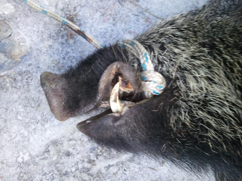 Os dejo el jabalí matado en el día de hoy para hacer el 62 en nuestra cuenta.Ahora mismo tenemos 3 de los mejores perros muy mal por culpa de los colmillos de este jabalí.Un mastín,un boxer-alano y un orejudo.Ahí quedan las fotos.