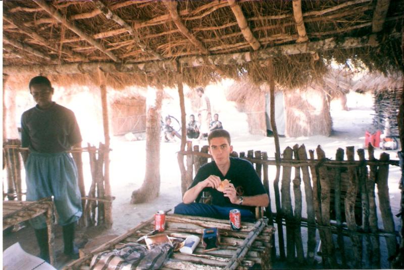 Otra del campamento, mi hijo desayunando, como podeis ver, todo muy natural e integrado en el medio, nada de mariconadas.