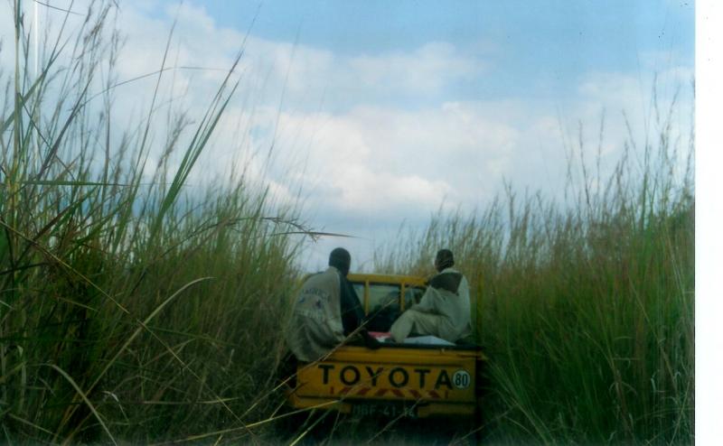 Lo de andar detras de un bicho cabreado deja seca la garganta, pero a veces tienes que echar mano al 4x4 (como en la foto adjunta) por que cuando el Capín tiene 2 metros de altura, como que da un poco de cosa darte con el bicho de cara sin antes verlo.