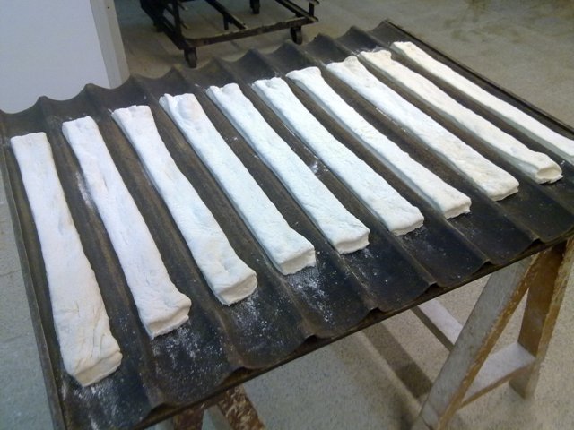 Cortamos las pieza. Con una txapatera se hace más rápido pero pierde su encanto, parecen panes robotizados. Hecho a mano es otra cosa.