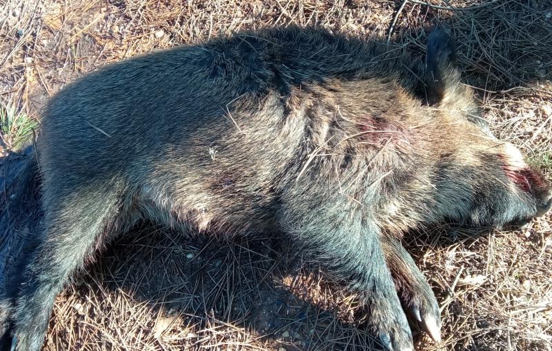 Sobre los dos jabalís abatidos, ambos solo tenían dos impactos y no aprecie orificio de salida (tampoco lo mire con detalle per creo que no)... Les pegue muchos tiros, pero no les daba (culpa del indio). Ambos con el primer impacto cayeron y les metí otro ya en el suelo para asegurar. El fugado, otro puesto le metió dos disparos mas y nada, acabo cruzando un rio a nado.