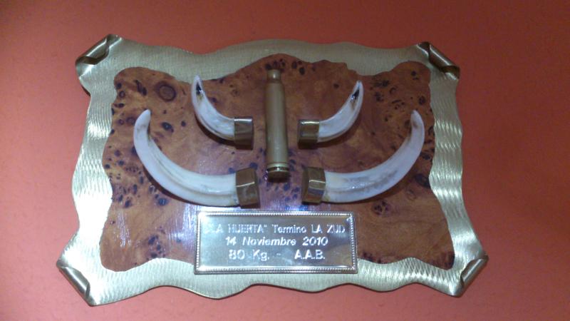 No es un trofeo, es poca cosa, pero fue mi primer jabali y le tengo tanta estima como el mejor trofeo.
