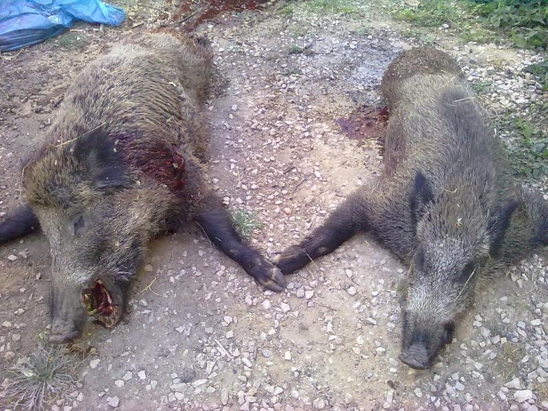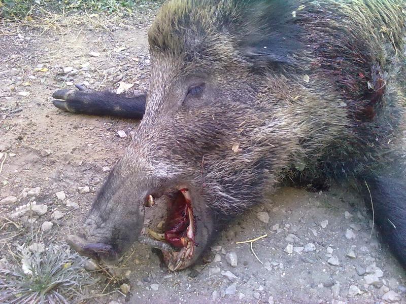 Una buena noche sobre las 23:30 horas y hasta los hue... de no escuchar ni mu, decidí levantarme, cosas que me costó bastante a -4ºC que estaba a esas horas. Pues el tema es que lentamente fui recogiendo cosas, y de repente escucho un par de chasquidos y a renglón seguido una estampida de conejos entran en la plaza y se meten en las madrigueras al rededor del cebadero. Entran tras de ellos dos pedazos de jabalís , sobre todo uno. Bien dan dos vueltas al cebadero a toda velocidad como si un formula uno se tratase que casi no pude ver mas que sombras. Desaparecen de mi vista y todo lo que oigo a escasos 4 metros a mi derecha son unos soplidos y bufidos que ensordecian. A los 2 minutos de dicho concierto entra en el cebadero uno de ellos el que me pareció mas pequeño de ambos y comienza a levantar las piedras. El otro se me coloca a la izquierda de mi puesto a unos 8 metros pero sin dejarme verlo, solo bufaba y soplaba . Yo saco el rifle me lo pongo al hombro pues sabia que por los bufidos iba a ser complicado hacerme con el grande. Me lo pongo en la cara y tanta ropa de abrigo llevaba , incluido un abrigo aigle de estos super gordos que crujen al apretarlos ( error ya subsanado de novato esperista) que no veia nada por el visor al encontrarme muy lejos del objetivo. Aprieto el rifle contra mi para poder ver algo y al crujir leve del abrigo en la zona de mi hombro. El macho grande de mi derecha emite un gruñido y el secretario que estab en el cebadero sale pitando. Lentamente tambien el macareno de mi derecha se va alejando gruñendo y soplando , perdiendose en el silencio de la noche. Nunca jamas los volví a ver , ni aparecieron por ahí.