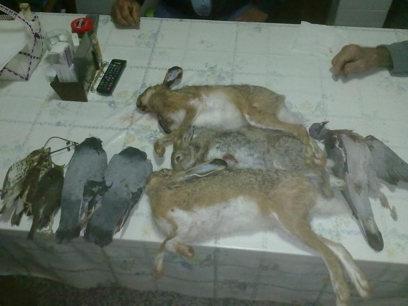 Ayer 1 liebre,2 Palomas, 1 Torcaz, 1 Conejo y 2 Zorzales
