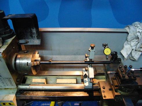 Aparte del tema del casquillo cuando puse el cañon entre puntos en el torno me di cuenta que el cañon estaba doblado como 1´5mm