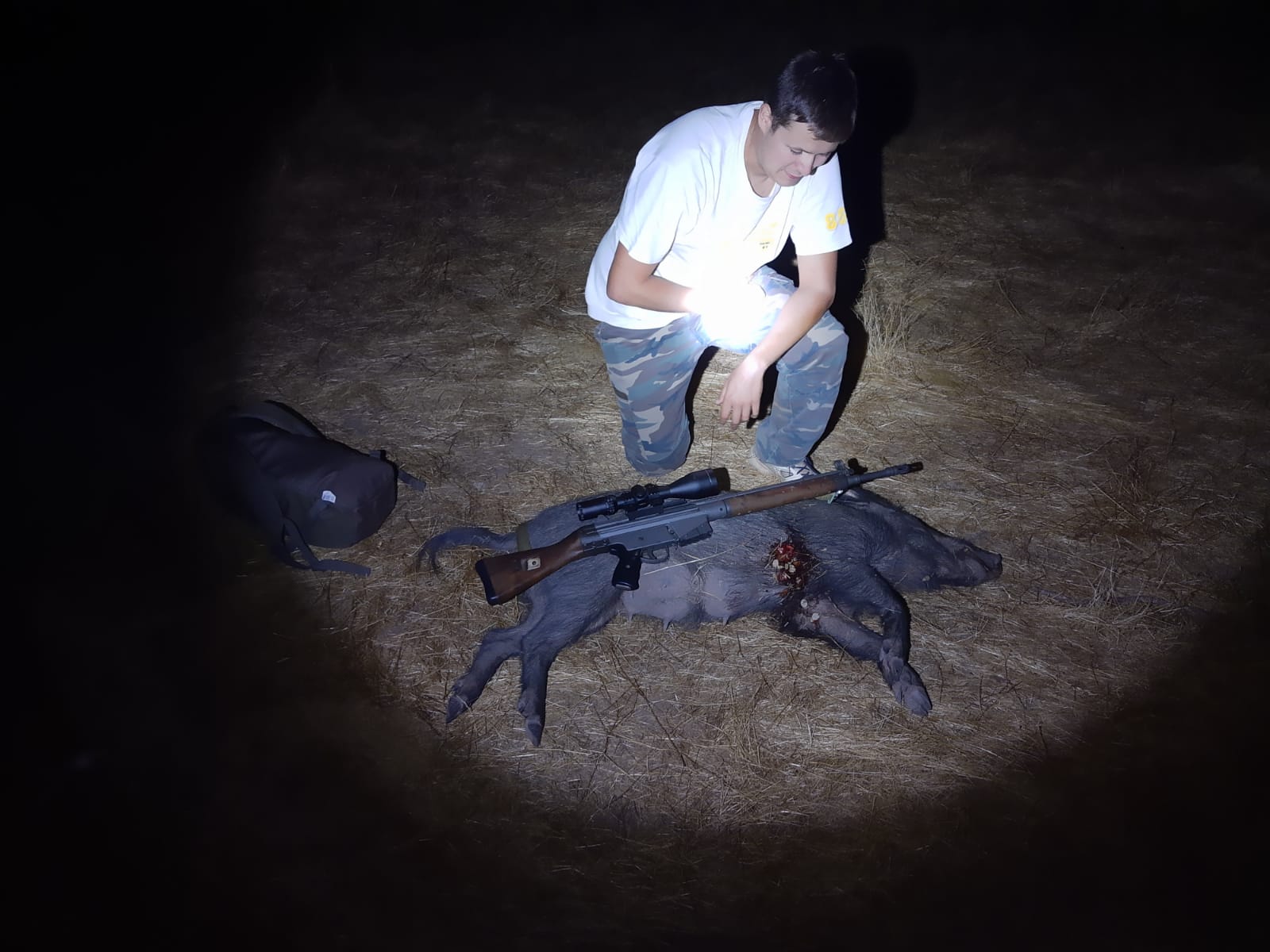 alvaro95 escribió:Bueno un día más me volví a confundir y pensé que estaba matando un guarro viejo y canoso. Resultó ser una guarra vieja y canosa. ya está congelada esperando resultados. Un saludo. El tiro a 50m, un tiro horrible, la punta hizo su trabajo.