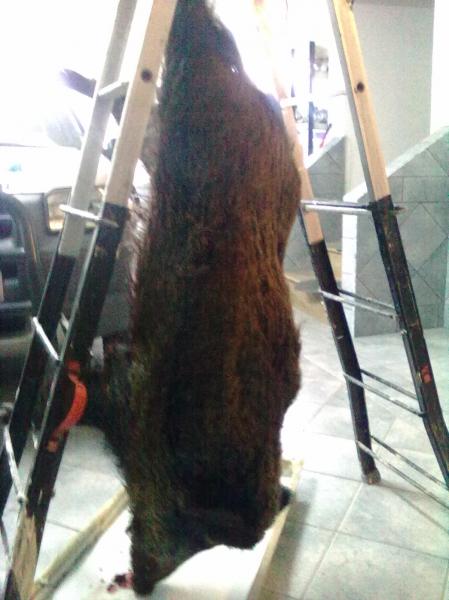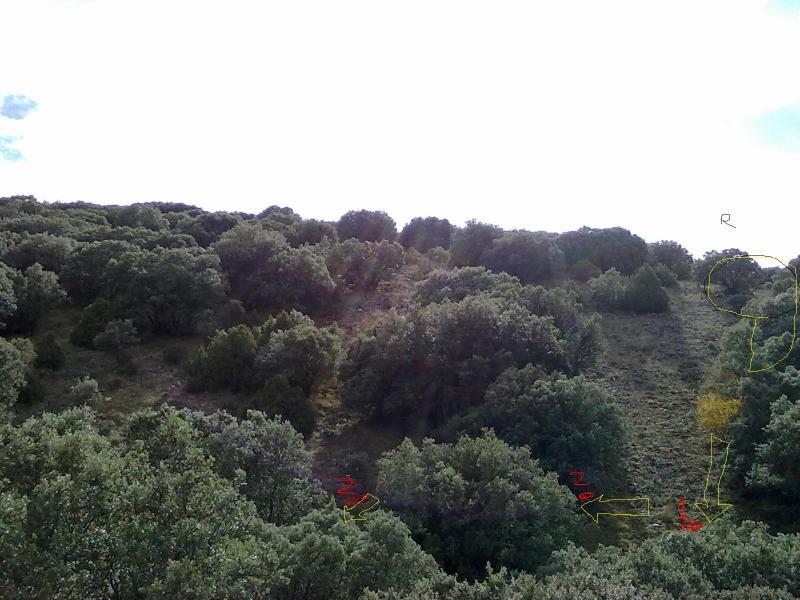 Pues ahí van las fotos,el tiradero estaba muy bien,la ladera de enfrente de un barranco,oigo romper monte y bajar por el barranco pero tapados y por fin salen al claro,tiro al primero en los 3 o 4 metros que tenia sin tapar le doy por encima de la paletilla y da una voltereta,el segundo gira por la ladera y le doy el primero,se me queda algo trasero pero le veo que acusa el tiro y baja el barranco y le secundo el tiro detrás de la paletilla y hay ya no se levanta