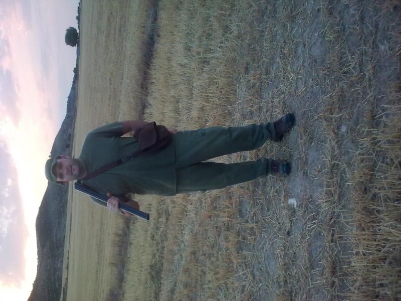 Y esta otra del morrosko en plan clásico, con gorra de pana, morral y escopeta de perrillos