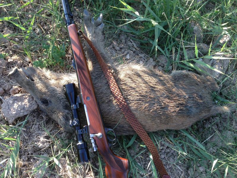 En mi descarga decir que después de 23 meses sin ver un Jabalí juro que anoche por el visor me parecía como un camión de grande, y que hoy uno de los compis tenía el telémetro y fue un tiro de 140 metros