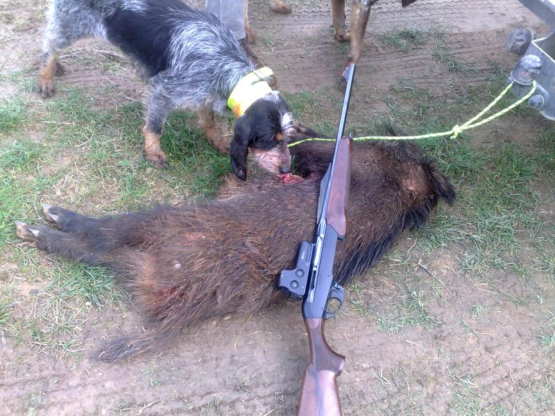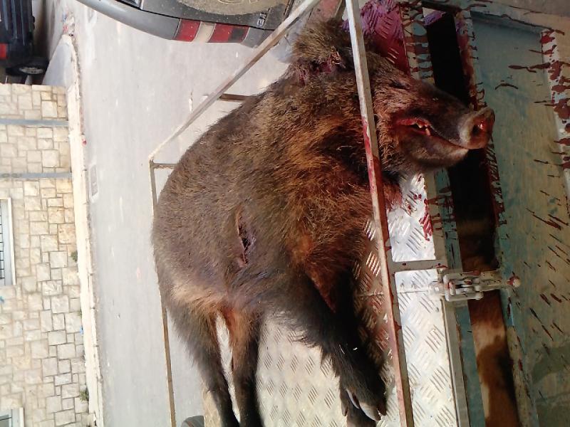 Os pongo la foto del jabali que mato uno de mis compañeros este sabado, fue a cuchillo en un agarre.