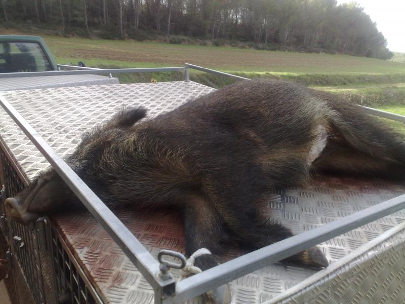 En estas que me llama mi hermano por la emisora y me dice que el jabali que he matado esta muy lejos a ver si voy a ayudarme, le contesto: pero si esta muy cerca... resulta que habia tocado el jabali de los 200 metros y habia hecho 10 metros hasta un terraplen que yo no veia y habia quedado muerto.