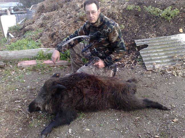 wenas, pues te dire jose que fue en una espera nocturna de este viernes pasado el arma si te fijas en la foto fue con arco la verdad que los lances con arco son una pasada, me entro tempranito sobre las 7 de la tarde aunque con este tiempo si llega a tardar mas me parece que me hubiese bajado de la encina, se hace duro una espera con el frio pero bueno como dicen unos ke yo me se, inmunes al desanimo jeje.