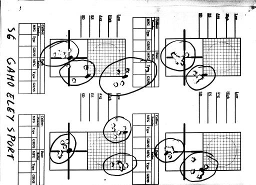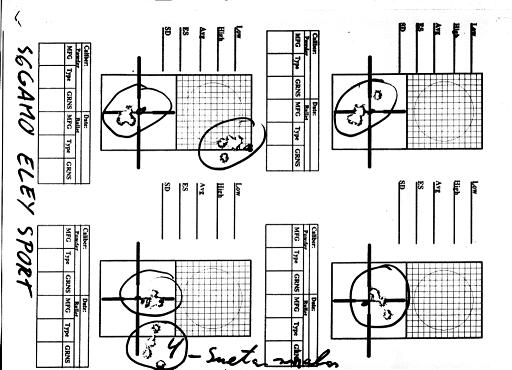 Unas fotos con Eley Sport a 56m, en cada grupo hay 5 tiros, es para volverse mono, segun como la agarras sale una cosa u otra