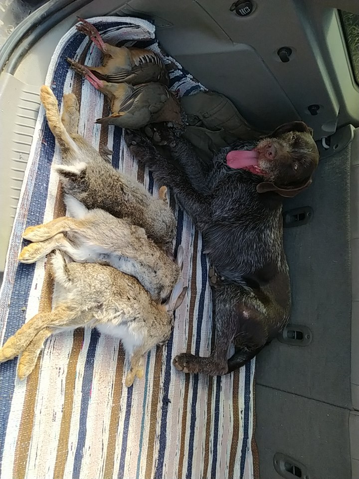 Posteriormente tuve un macho, el cual por problemas de parvo y un atropello del tren, psicologicamente no andaba muy bien, pero cazando era una maquina.