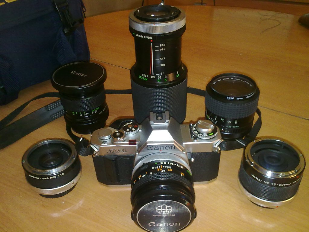 CAMBIO, Camara . CANON AV.1. con todo el equipo que estais viendo y con su funda correspondiente. por pistola del 9mm.parabellum.