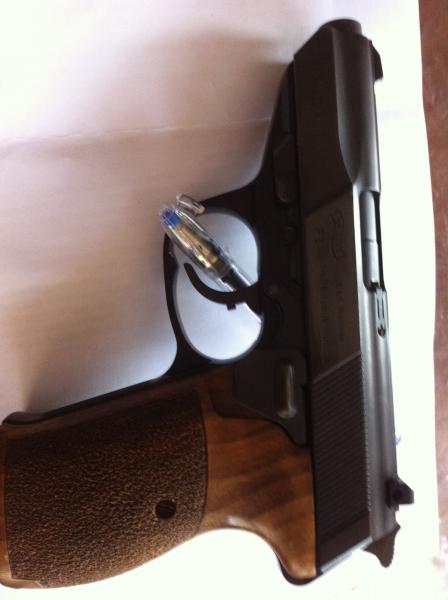La pistola esta guiada con tipo "B", calibre 9 mm pb.