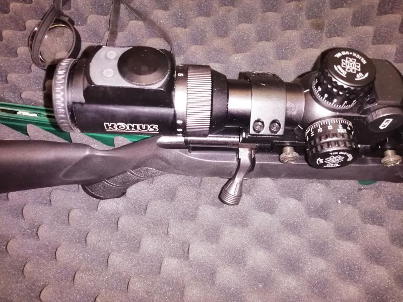 Pasaría por nuevo, ha disparado una caja de balas. Inmaculado, precisión extraordinaria. Incorpora visor KONUSPRO 4-16X44 EL 30 con carril y anillas fijas de acero. Se cambia por rifle de calibre superior de mi interés y similar estado o escopeta platera.GARANTÍA DE FABRICA RIFLE Y VISOR.CAMBIADO SE RUEGA CERRAR.