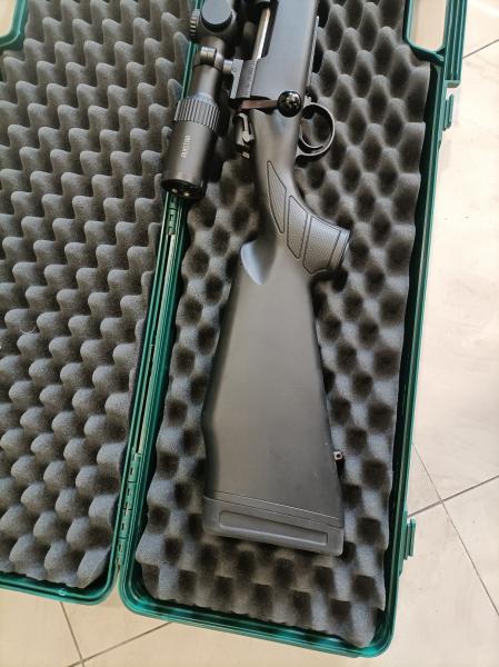 Apenas usado, prácticamente de reestreno.Cañon roscado de fábrica. Incorpora como extras monturas desmontables LEUPOLD y visor Avistar 2,5-10X50 asi como su puesta a tiro a 100 MTS.Se entrega tal cual se encuentra el equipo,no se despieza. Se çambia por rifle de mi interés, particularmente express o semis.CAMBIADO SE RUEGA CERRAR.