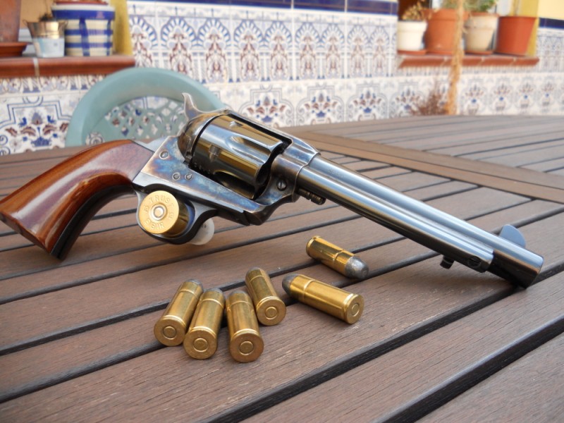A cambio ofrezco revólver Uberti Cattleman 5'5" del .45 Colt guiado en AE, como nuevo; ha tirado tres cajas de 50 cartuchos. Valor para cambios 450€, diferencia de precio, si la hay, a convenir. Incluyo las tres cajas de vainas CBC Magtech usadas una vez, un juego casi completo de tiro de salón, y alguna cosa más si el trato se hace en mano.