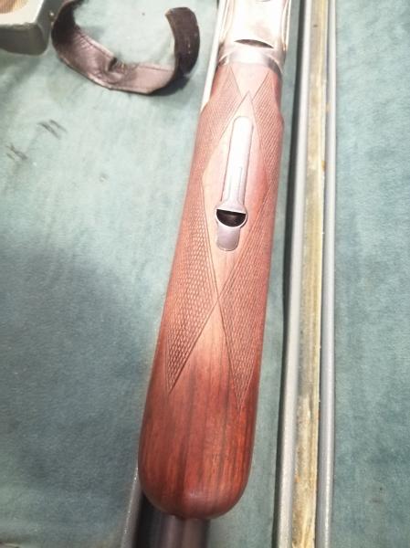 Prácticamente sin uso, como de reestreno.Inmaculada y perfecta de maderas, pavón y mecanismos.Cañon de 75cm,chokes BIRLEY.Se cambia por rifle Express, con o sin visor, en calibre no inferior al 9,3X74R,preferentemente calibre 375H&H y cuyo ESTADO y VALOR DE NUEVO, sea similar al de la escopeta . CAMBIADA SE RUEGA CERRAR.