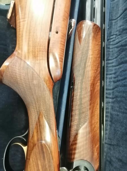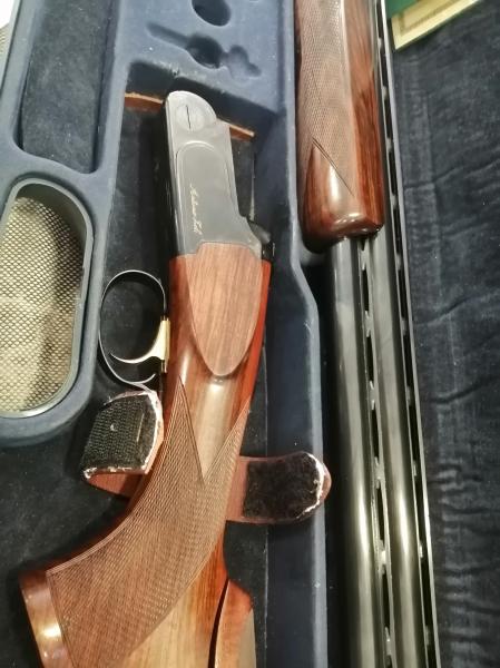 Extraordinaria escopeta ,de la más, que prestigiosa firma de armas Italiana. Resulta una autentica delicia disparar con ella, tanto por su reparto de masas, que la hace muy equilibrada , como por su expectacular plomeo en ambos cañones . Su estado pasaría por nuevo , perfecta de pavón, maderas y mecanismos . Usada en contadas ocasiones. Cantonera mejorada especial antirretroceso. Culata regulable. cañón de 76 y 1 y 2 estrellas .Maletín original rigido. Se cambia por rifle de caza o visor de mi interés y similar valor de nuevo y estado, que mi arma.
