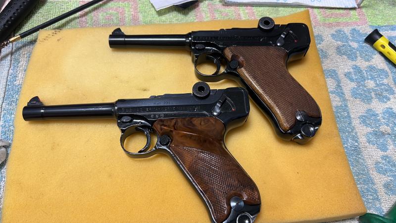 Pistola Erma Werke 22 Lr, se entrega con algún repuesto, 2 cargadores, cachas artesanales de madera y caja original (la caja algo deteriorada por fuera) PRECIO: 320€ + envío si lo hubiese,