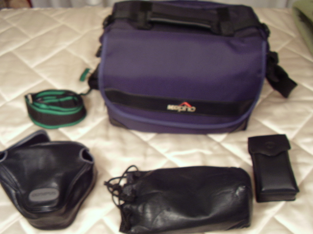 La camara y objetivo 35-70 lleva su funda de cuero triangular Olympus original, funda de cuero original Olympus para objetivo de 70-210, correa y bolsa de transporte muy nueva.