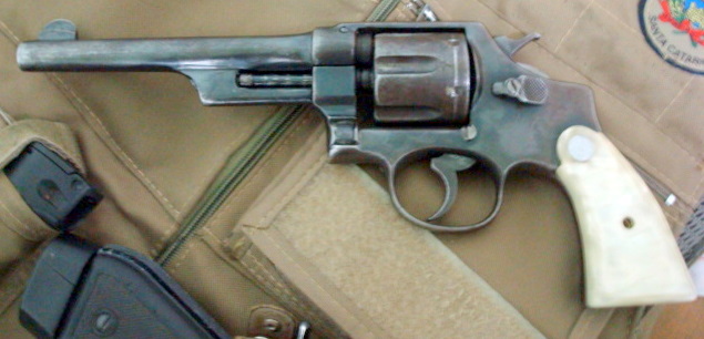 Desde mi punto de vista creo que pudiera tratarse de Mod 1917,no obstante existen algunos detalles,como el alojaniento de la varilla extractora bajo el cañón y el muelle real en "v",mas propio de los Colt, que me hacen dudar.¿Que pensais vosotros?