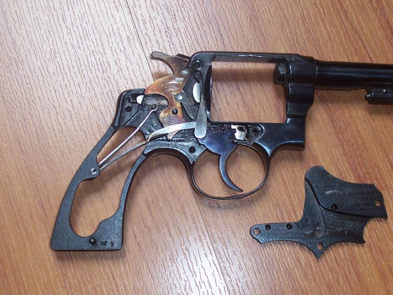 El calibre es un .44;pero para ser un Colt no me cuadra el tipo de cerrojo.Este de es del tipo usado por los "Smith",abre empujando hacia adelante,mientras los "Colt" lo hacen tirando hacia atrás.