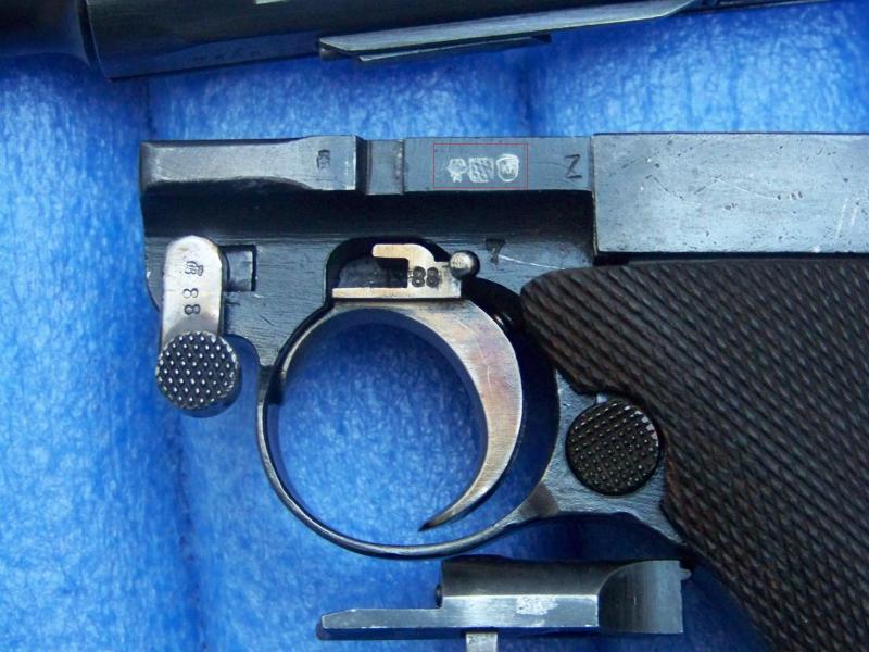 Vista en mano la pieza no creo que sean números lo que presenta en su parte inferior, sino que se asemeja más a uno de los punzones de los inspectores, algo que no seria descabellado tampoco teniendo en cuenta las fechas en que se fabricó, con los estandares algo más relajados en cuanto a marcajes y acabados debido a la necesidad de armas en el frente, algo muy evidente en, por ejemplo, los tornillos de las cachas.