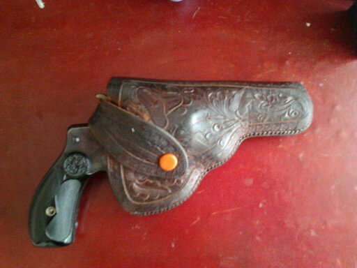 Perdón! Lo cierto es que no soy muy ducha en esas cosas y desconozco por completo el tema de las armas. La marca es smith & wesson y en uno de los laterales pone:38 s&w CTG...
