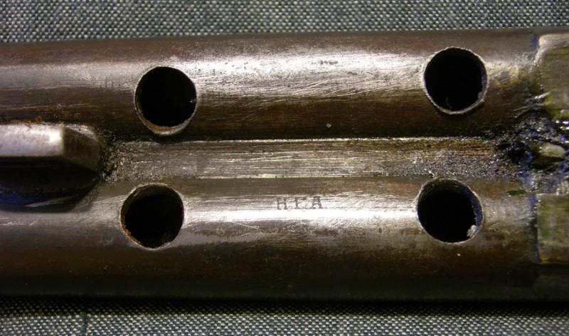 Tengo algunas fotos muy malas, lo único que se ve en la solista es un punzonado como este "ACIER ECLAIR" pero sin dorar
