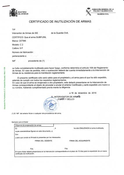 pues eso, tengo un cetme b, con certificado de inutilizacion del ejercito, el que me lo vendío, firmo su traspaso a mi nombre, mi pregunta es si debería ir a la intervencioón y hacerlo nominal, o ya lo tengo bien,, que me aconsejais?