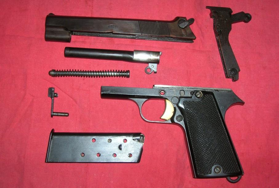 Por lo que he leído sobre ella, era una buena pistola (de hecho, creo que su diseño está emparentado con las SIG), pero su munición (7,65 Longue) era muy poco potente.