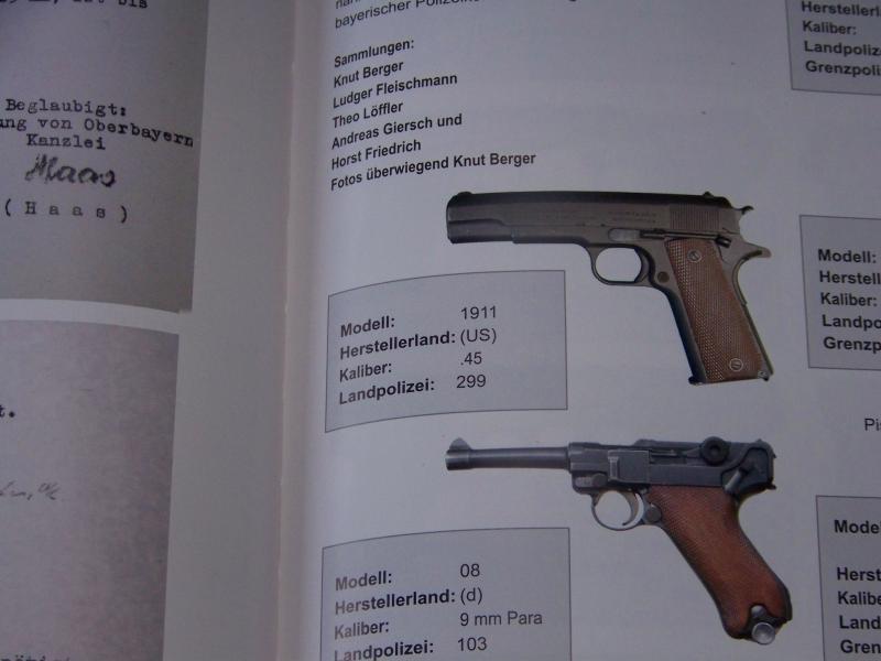 Un libro de buen tamaño, con nada menos que 288 páginas, innumerables fotografias, dedicado integramente a las armas de la Policia bavara desde 1945 hasta la actualidad, pleno de información y documentación, pero en el que casualmente solo aparece UNA !!!! foto, además de un tamaño diminuto, de un arma que no es exactamente la de este bodegón, sino la versión anterior (la 1911 "pura"), a pesar de mencionar que existieron entre 295-299 ejemplares (en una de las páginas de texto menciona que fueron 295, dedicados a la "Border Police", mientras que junto a la foto menciona que fueron 299, destinadas a la "Landpolizei", es decir, la Policia Rural bavara).
