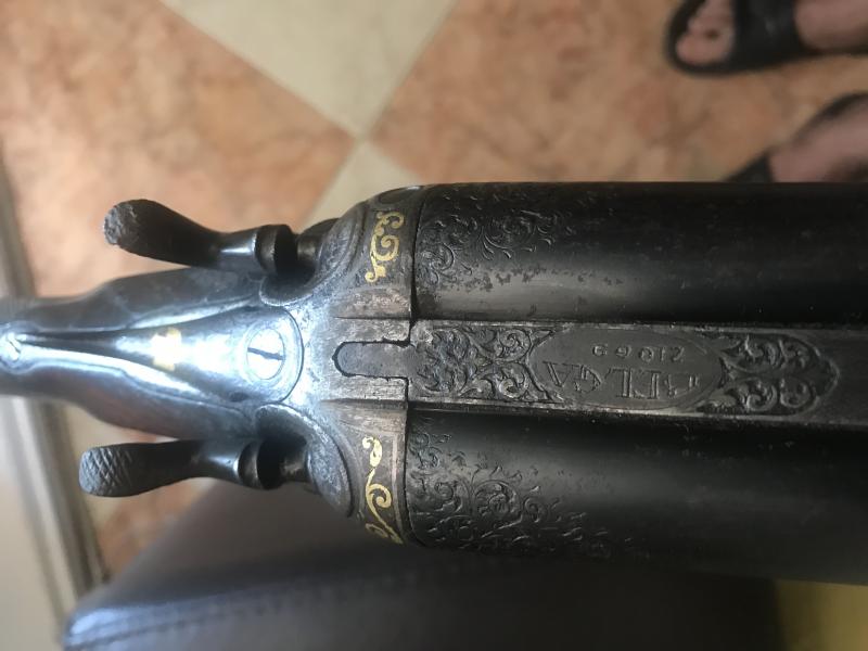 Buenas tardes compañeros me dirijo a ustedes para ver si alguno me puede orientar sobre el valor que puede tener una escopeta marca Belga de perrillos,no se tampoco la antiguedad que pueda tener pero entiendo que bastante ya que mi padre la heredo de mi abuelo y este a su vez de un pariente.La escopeta escopeta es preciosa tiene la bascula grabada con animales y motivos de caza pero estos dibujos estan hechos claramente a mano con oro.El estado de conservacion no es malo aunque las maderas estan bastante oscurecidas.Espero que me podais ayudar os pido disculpas por las explicaciones y por los terminos que he utilizado que seguro no son los mas correctos,un saludo y gracias de antemano.
