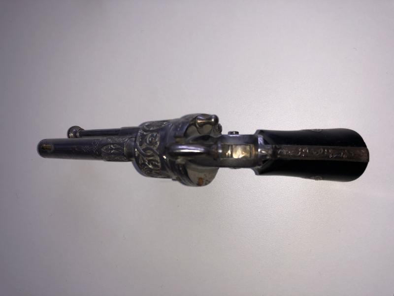 Buenos días, estoy intentando que alguien me diga algo sobre este revolver, lo heredé de mi abuelo hace algunos años y a su vez él lo heredó de su padre. Según me lo dio está tal cual, no vienen ningún número ni letra para poder investigar algo, si alguien pudiera decirme algo. Adjunto algunas fotos, si quisieras más para investigar, puedo hacerlas. Gracias