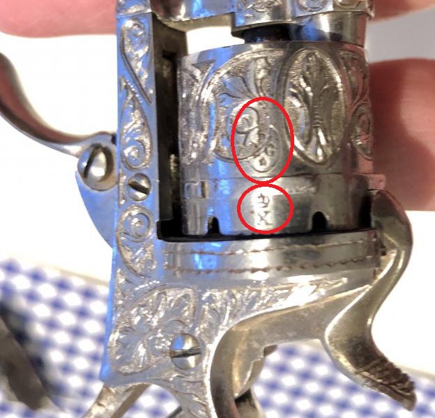 La foto del tambor tendria que ser por el otro lado, por donde se introducen los cartuchos y por la calidad del grabado me extraña que el grabador no pusiera su firma.